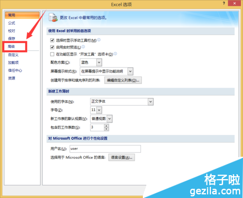 在打開(kāi)“Excel 選項(xiàng)”菜單中選擇高級(jí)選項(xiàng)!