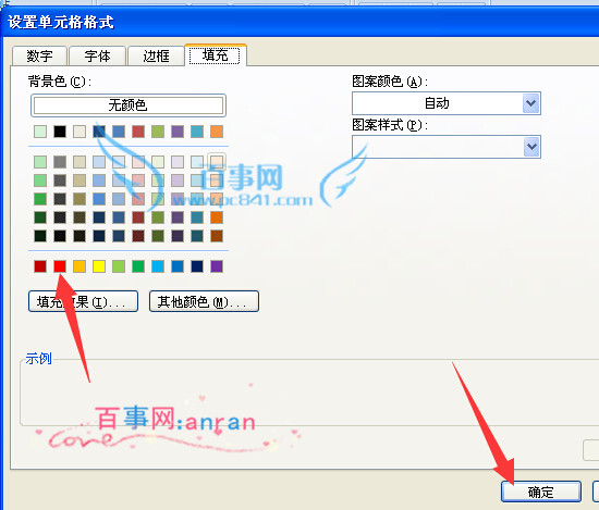 接下來我們就選擇好填充的顏色,比如要設置填充顏色為紅色,那么就單擊紅色,單擊紅色之后我們再單擊下方的“確定”按鈕。