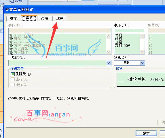 單擊格式之后會彈出一個對話框,此時會有幾個選項供我們選擇,如果我們要設置邊框或者字體的話都可以單擊相對應的選項進行設置。因為我們是要設置單元格為空時顯示填充顏色為紅色,所以此時我們單擊對話框上方的“填充”按鈕。