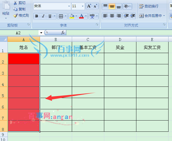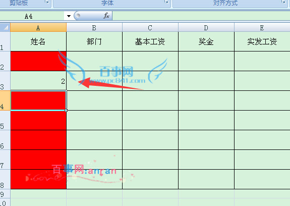 然后會回到如圖面板,此時我們依舊單擊“確定”按鈕。然后就會回到excel表格面板,此時我們就會發現A2:A8的單元格已經變為紅色了,當我們輸入數字之后單元格里的顏色就會自動消失,如圖3所示。