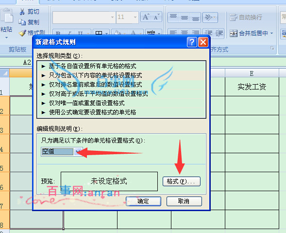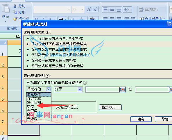 選擇空值之后會回到如圖對話框,我們單擊下方的“格式”按鈕。
