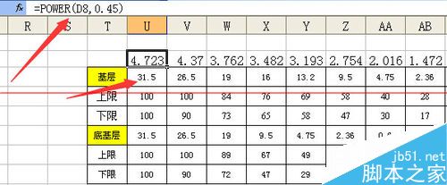 2、列出需要的篩孔尺寸-并計算出相應0.45次方的值