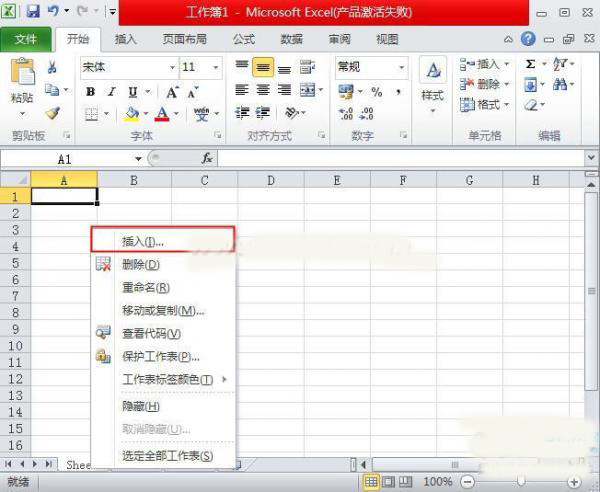 鼠標右擊某一個sheet,在彈出菜單中選擇“插入”選項。