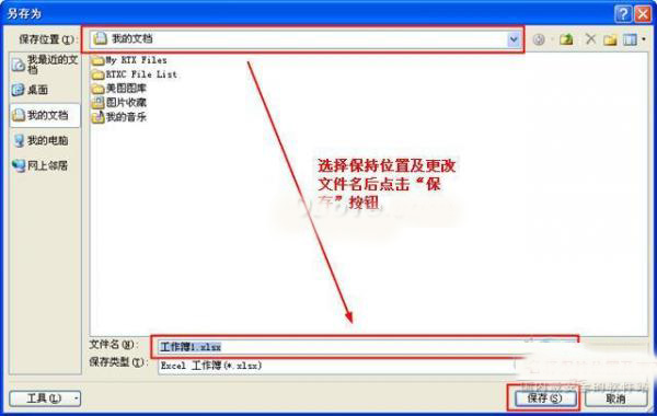 在彈出的“另存為”對話框中,我們可以選擇文件的保存位置及更改文件名后,點擊“保存”按鈕,就可以對文件進行保存了。