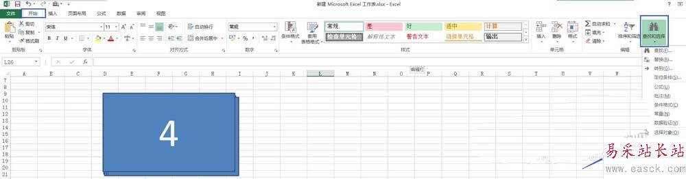 6、若要選擇層疊在下面的形狀,直接選擇有點麻煩;可以點擊菜單欄中的開始項,找到查找和選擇命令,在彈出的下拉菜單中選擇選擇窗格命令。