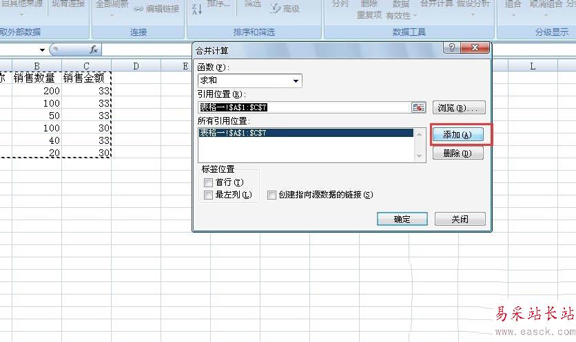 6、點擊右側的添加,將選中的表格一添加到所有引用位置