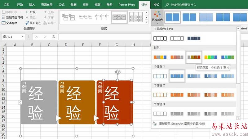 5、可以通過菜單中的“更改顏色”按鈕,來修改圖形的顏色