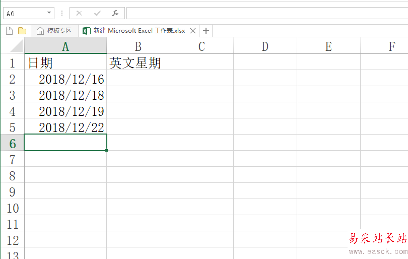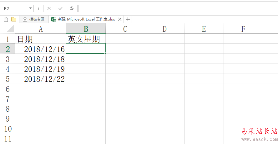 1、教程以新建的Excel文檔為例來介紹如何快速得到指定日期對應的英文星期。