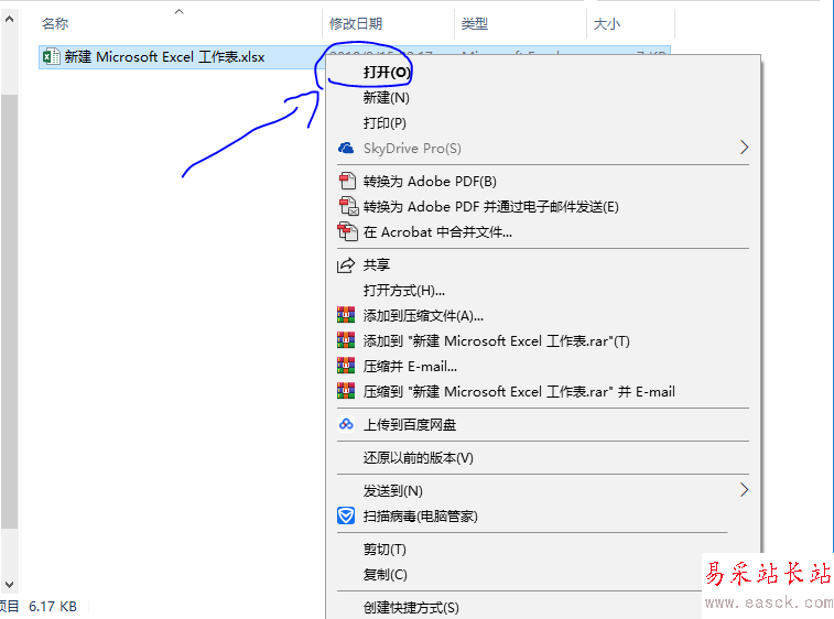 2、鼠標右鍵單擊Excel圖標,然后在右鍵菜單中選擇打開命令。