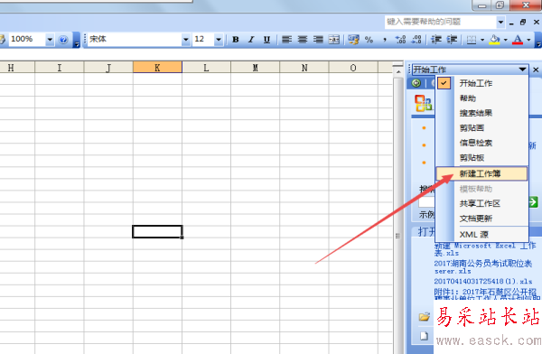 3、在任務窗格的最上方選擇下拉列表,單擊”新建工作簿“命令。