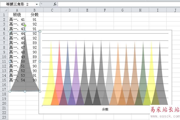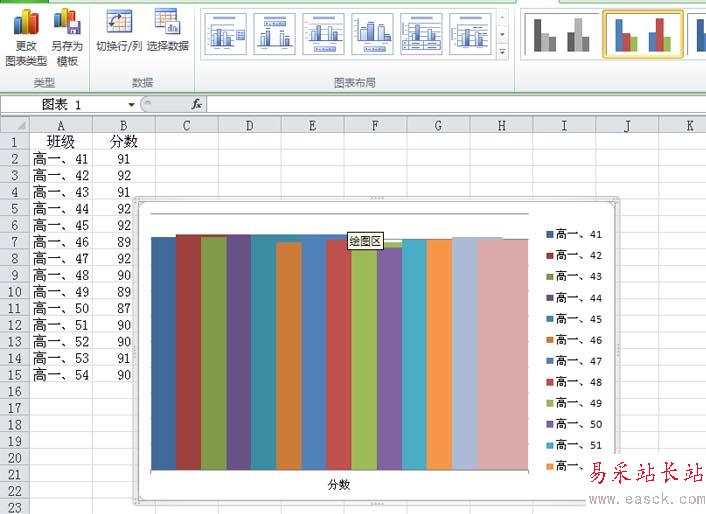 11、采用同樣的方法依次設(shè)置不同的顏色然后復(fù)制粘帖,將所有的柱形換掉即可完成操作。