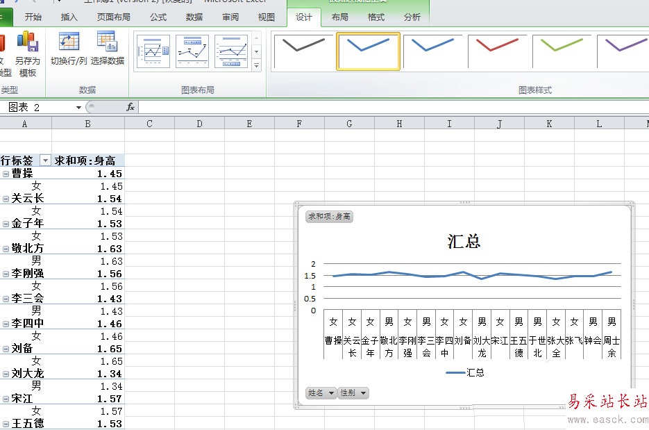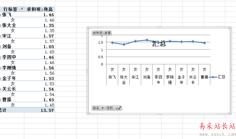 6、根據不同的使用目的,對數據進行篩選。如只保留男生人數就把女生前的選框去除勾選。