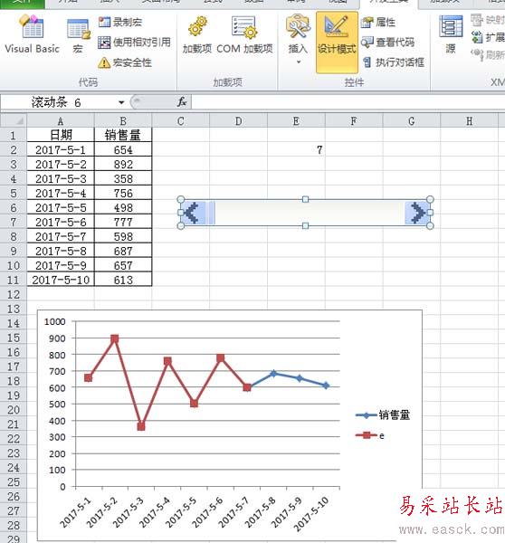10、接著選擇網格刪除網格,調整圖表的大小和位置,這樣一個隨著滾動條變化的動態折線圖就制作完成了,執行文件保存即可。