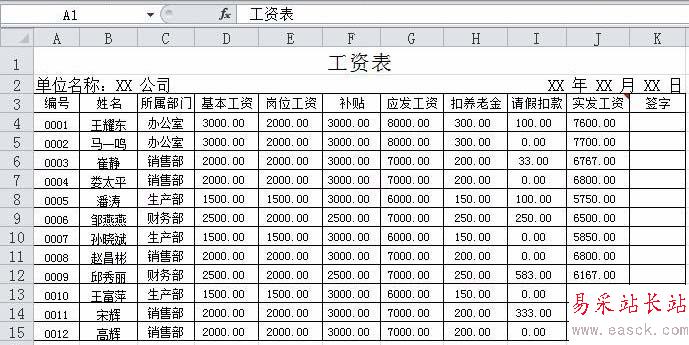 1、現已有一個工資表格來作例子。圖一是已有工資表,圖二是目標操作。在這里,我們需要用B3:B15以及J3:J15區域的數據來制作圖表,也就是職工姓名以及職工的總工資,這兩組數據來放入圖表中。