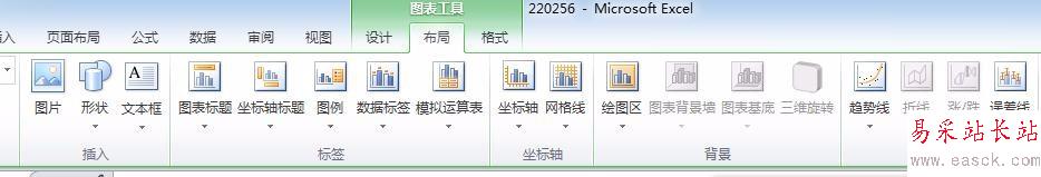 5、我們會發現,之前的圖表并沒有完善成功,橫坐標沒有標題,圖表也沒有標題,圖例的位置好像也可以改改。這時,我們把功能區換到 布局 ,超多新東西,在布局-標簽處,可以找到我們想要換的東西: 圖表標題,坐標軸標題,圖例。