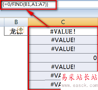 6、0/FIND(B1,A1:A7)這部分讓上一步返回的值參與運算,如果上一步返回的是數字,結果就返回0否則仍返回錯誤值。