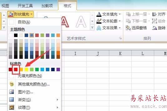 5、點擊五角星選項,按下shift鍵在編輯區(qū)里拖動鼠標左鍵就畫出五角星形, 然后在找到形狀填充選項,將形狀填充設置為紅色,如圖所示: