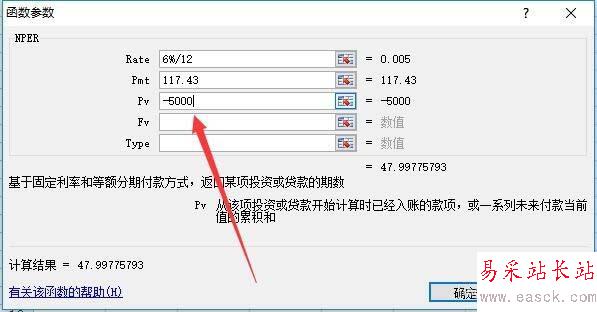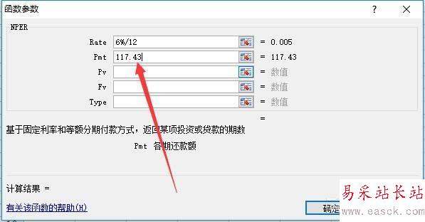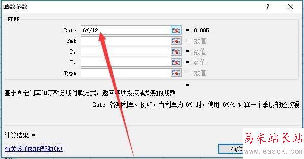 3、第一個參數寫利率,這里要求寫的是每期利率。如果已知年利率需要除以期數