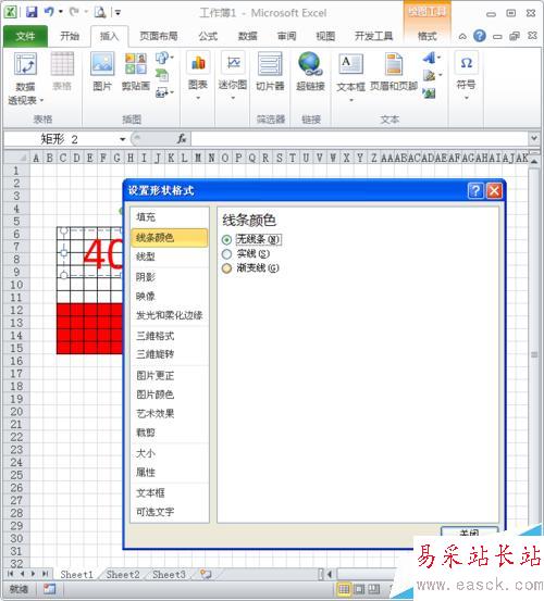 8、選中插入的,右鍵單擊,選擇"設置形狀格式“-選擇”填充“-”無填充“-”選擇“線條顏色”-“無線條”-點擊關閉即可