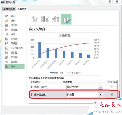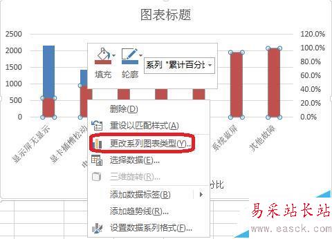 3、右擊——更改系列數據圖表類型——累計百分比(折線圖)。