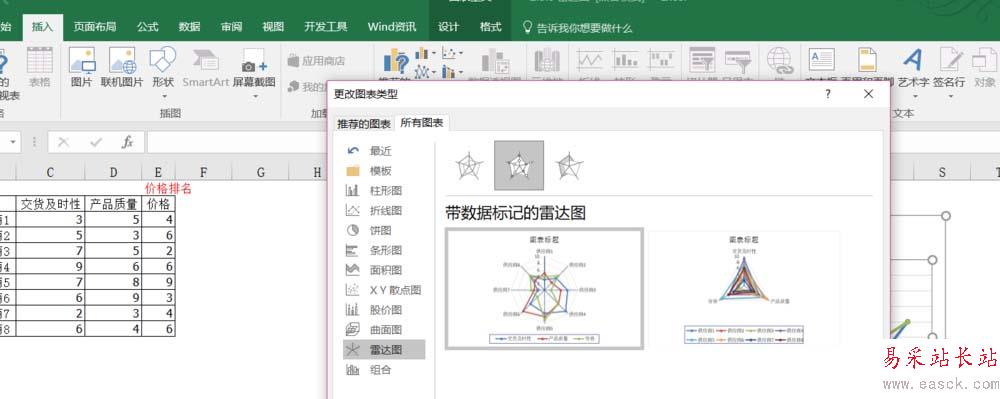 excel表格中怎么制作部門評分的雷達圖表?