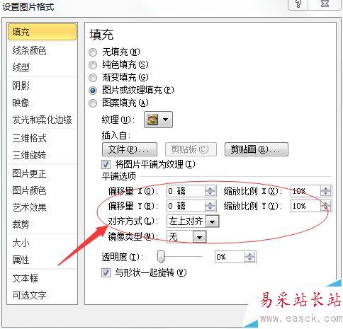 3、選擇--圖片與紋理填充。勾選--將圖片平鋪為紋理,就可以使用紋理填充。