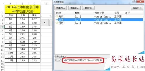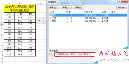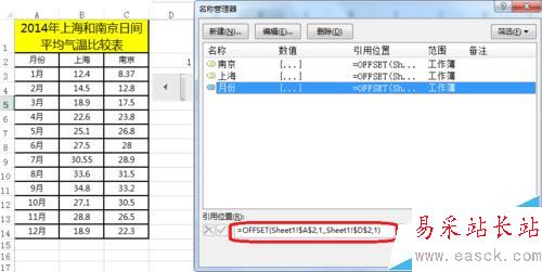 sheet1!為固定值——南京(為上面定義的名稱,動態的有關南京的數據)