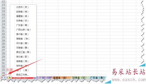 技巧三:如果工作簿中的工作表實在太多,需要滾動很久才能看到目標工作表,那么可以右鍵單擊工作表導航欄,這是會顯示一個工作表標簽列表,直接單擊目標工作表名即可。