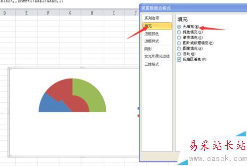 5、隱藏下半部圓形,設置下半圓數據點,將數據點填充色選“無填充”即可。