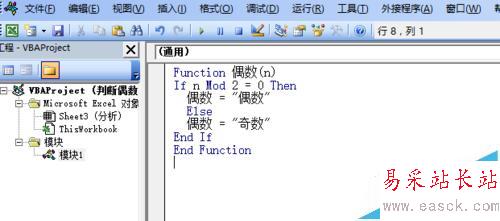 本節目的:用Excel自定義函數來判斷一個數是偶數還是奇數。