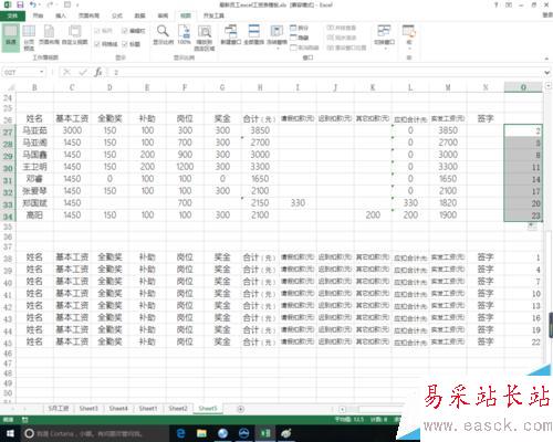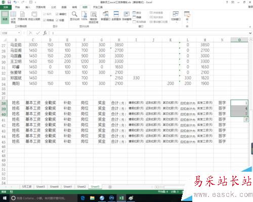 9、現在可以去除掉輔助序列,和多余重復的排頭。完美的工資條就做好了。