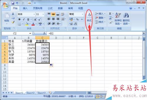 3、全部選中C列的數(shù)據(jù)