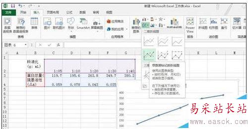 3、如圖所示:點擊插入→圖表框中選擇折線圖圖形→下三角中選擇帶數(shù)據(jù)標(biāo)記的折線圖。