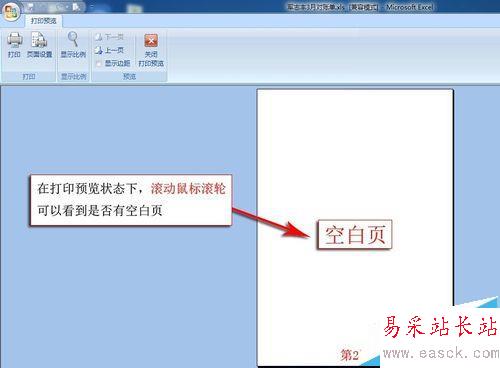 2、在打印預覽狀態下,滾動鼠標滾輪可以看到是否有空白頁。
