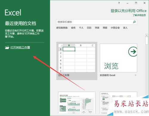 1、鼠標左鍵雙擊計算機桌面Excel2016程序圖標,將其打開運行。在打開的Excel2016程序窗口,點擊“打開其他工作簿”選項,打開需要進行編輯的Excel工作表。如圖所示;