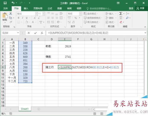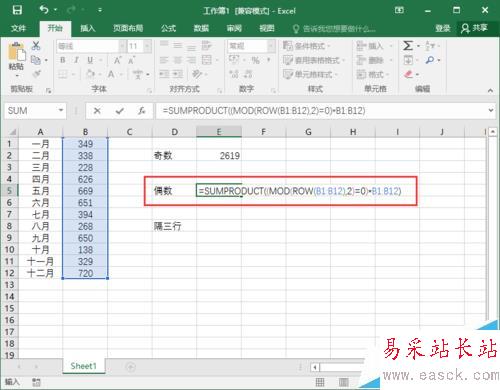 Excel2016中,有時工作需要,經常需要奇數月和偶數月分開統計。這也是常說的excel隔行求和的典型應用。一起來了解下吧!