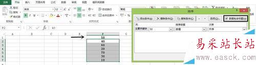 排序時,如果將標題和數據一起選擇了,則應該將“數據包含標題”前打勾,否則標題也會一起排序。