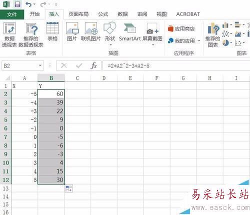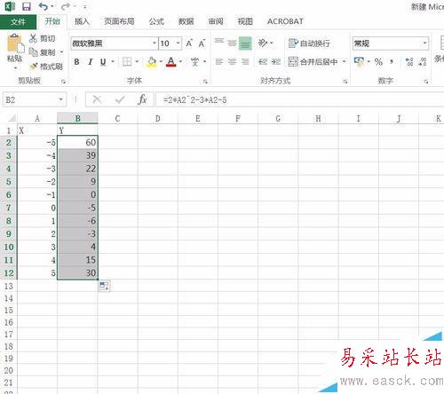 1、首先我們打開Excel 2016,并輸入一串二次函數(shù)的數(shù)字。