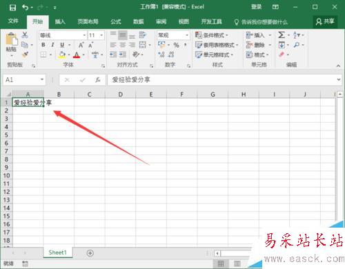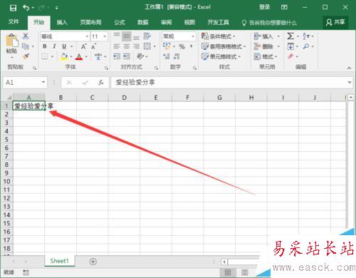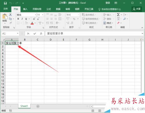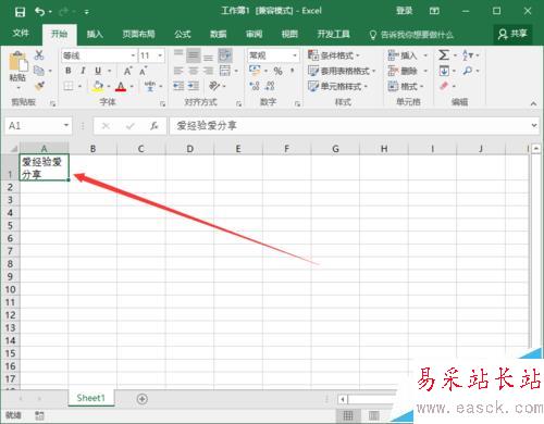 9、選中單元格,將鼠標光標定位在“驗和愛”中間。如圖所示;