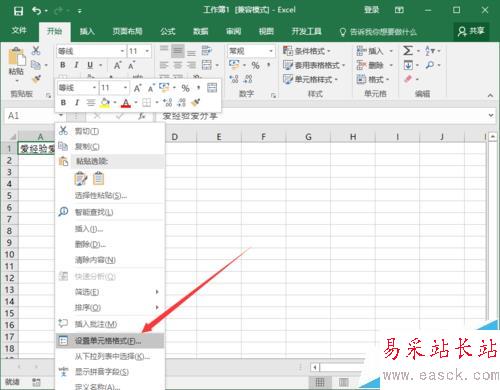 3、選中單元格,點擊鼠標右鍵,在彈出的菜單選項中,點擊“設置單元格格式”選項。如圖所示;