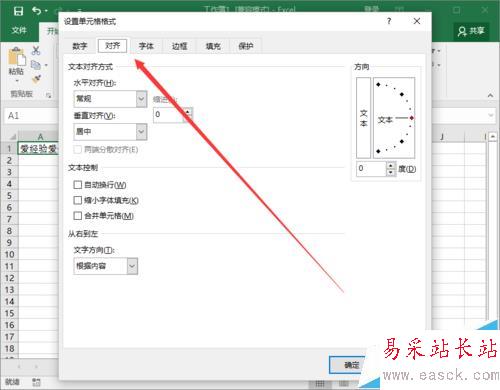 5、在設置單元格格式對話框中,選擇“對齊”菜單選項卡。如圖所示;