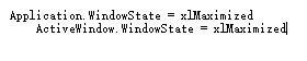 Application和ActiveWindow在這里是同一個對象,windowstate是其屬性。 xlMaximized是賦值。
