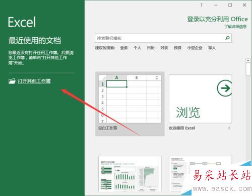1、鼠標左鍵雙擊計算機桌面Excel2016程序圖標,將其打開運行。在打開的Excel2016程序窗口,點擊“打開其他工作簿”選項,打開需要進行編輯的Excel工作表。如圖所示;
