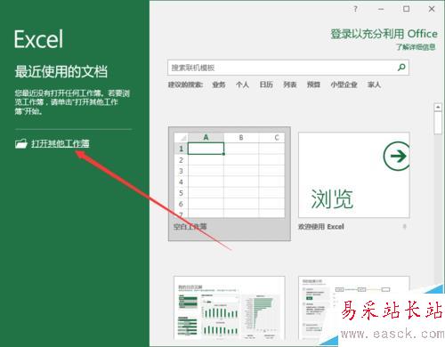 1、鼠標左鍵雙擊計算機桌面Excel2016程序圖標,將其打開運行。在打開的Excel2016程序窗口,點擊“打開其他工作簿”選項,打開需要進行編輯或者修改的Excel工作表。如圖所示;