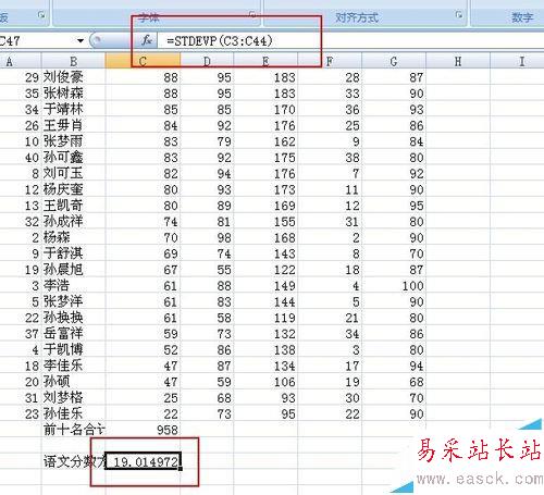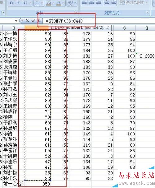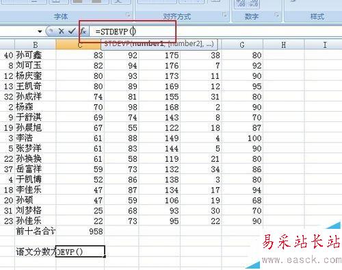 2、筆者這邊以計(jì)算一些成績(jī)數(shù)據(jù)的方差作為演示