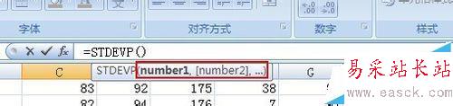 4、在單元格中上地址欄輸入=STDEVP(),這個(gè)STDEVP就是計(jì)算標(biāo)準(zhǔn)差的函數(shù),這個(gè)要知道