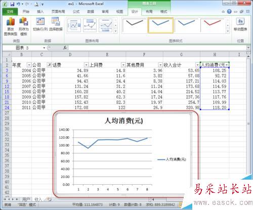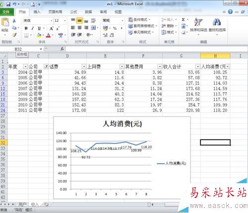 “帶數據標記的折線圖”操作步驟并不難,我們以此為例,要求:在"收入"工作表中,根據篩選的"公司甲"人均消費數據,生成一張"帶數據標記的折線圖"。