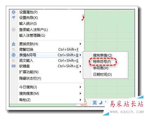 1、在第三方輸入法(小編使用搜狗)的狀態欄右鍵——表情符號——特殊符號。
