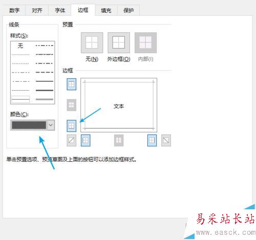 6、在單元格設(shè)置中,將邊框樣式的顏色修改為深灰,并點擊下邊框重新繪制。如圖所示: