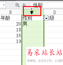 2、點擊全選一列的項目組,鼠標移動到那一列的頂部將會變成向下的方向箭頭,然后選擇全部。